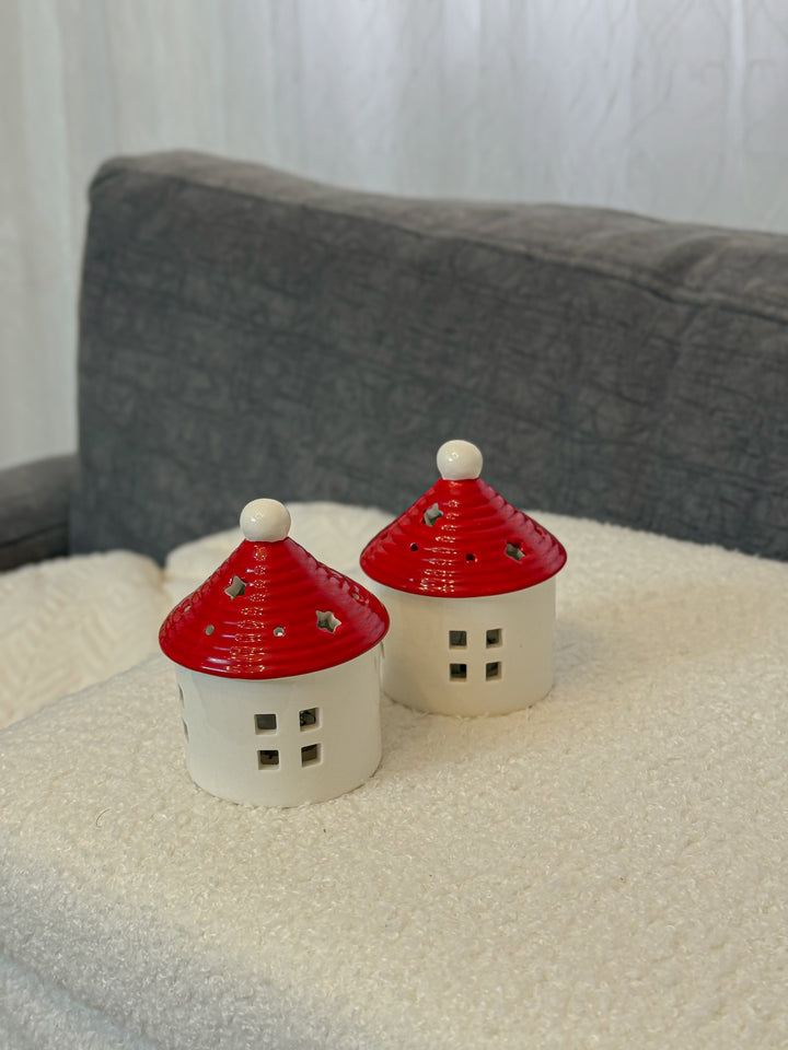 طقم بيوت سيراميك حجم صغير مع اضاءه ذاتية عدد٢